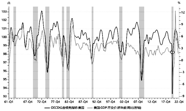 图为OECD美国综合领先指标(CLI)与NBER衰退周期 铜作为最具宏观属性的有色金属,与全球经济周期、流动性、美元指数、原油等都具有明显的相关性。2022年海外加息节奏成为主导铜价趋势的因素,随着海外通胀数据出现见顶迹象,多项经济数据出现放缓甚至下滑,2022年年底至2023年加息对铜价的影响是一个逐步弱化的过程,市场交易的主线逐渐过渡到衰退预期之中。由于经济下行甚至衰退,铜的工业属性会由于需求端受抑受到较大拖累。 从下行的PMI数据中看,市场对2023年欧美的衰退担忧并不是空穴来风,尤其是欧洲在经历了俄乌冲突之后,本就严峻的经济前景变得更加棘手。虽然2022年的暖冬令市场情绪有所回温,但在通胀依旧偏高之下,欧洲央行仍表示还将持续加息,经济发展前景不容乐观。美国情况则有些不同,从经济数据上看并没有欧洲那么强的信号,反而颇具韧性,其风险点便集中于2023年货币政策的校准,这也是影响美元和铜价走势的一大因素。从美国几大领先指标来看,出现衰退的可能性较大。其经济领先指标中,OECD美国综合领先指标CLI已连续半年低于100水平线,表明美国经济已在潜在水平下运行。而CEIC先行指标2022年二季度跌破100水平线,但仍高于80,显示出短期较为乐观,而中期存在衰退风险。另外收益率曲线的倒挂也可视为衰退指标,给中长期预测提供线索,10Y—3M利差从2022年10月下旬持续倒挂,10Y—2Y利差7月初便开始倒挂,各项指标都表明未来3—6个月美国经济面临严峻态势。