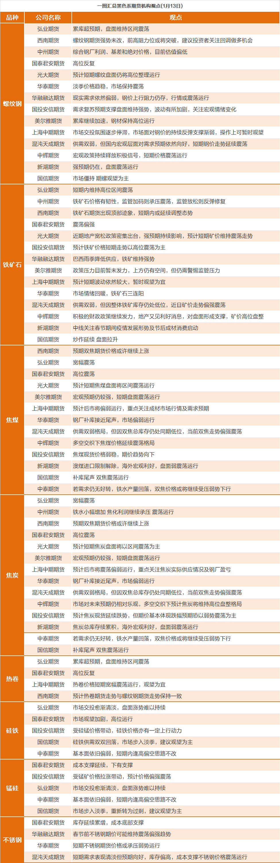 一图看懂 | 1月13日黑色系期货机构观点汇总