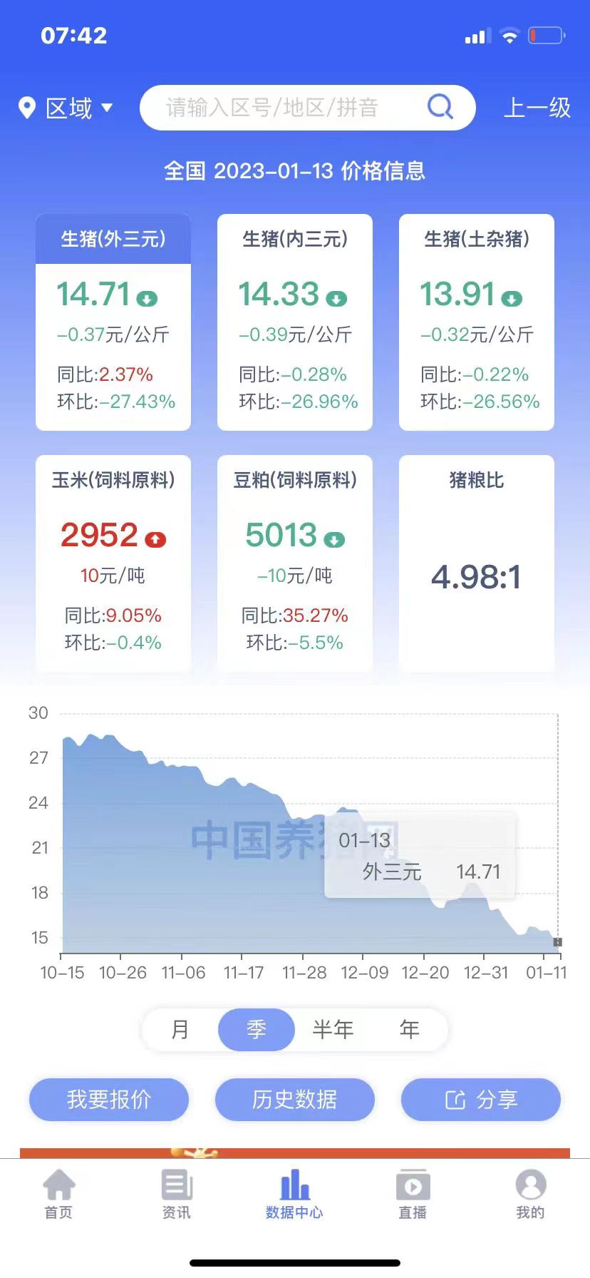 猪料比跌破5:1 业内预计春节后“淡季不淡”