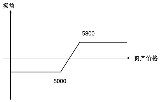 图为卖出AG2302P4700期权损益 组合期权投资策略 偏强趋势市场预期下,牛市价差组合策略同样适用,实际应用如下: 1.看涨期权牛市价差组合 可以通过买入标的物为沪银2302合约行权价为5200的看涨期权(AG2302C5200)同时卖出标的物为沪银2302合约行权价为5800的看涨期权(AG2302C5800),来构建一个牛市价差策略,因为执行价格较高的期权权利金较低,因此初期现金流为负,即需要支付一定权利金作为成本,但是随着沪银价格的上涨,该组合将会逐渐获得收益。
