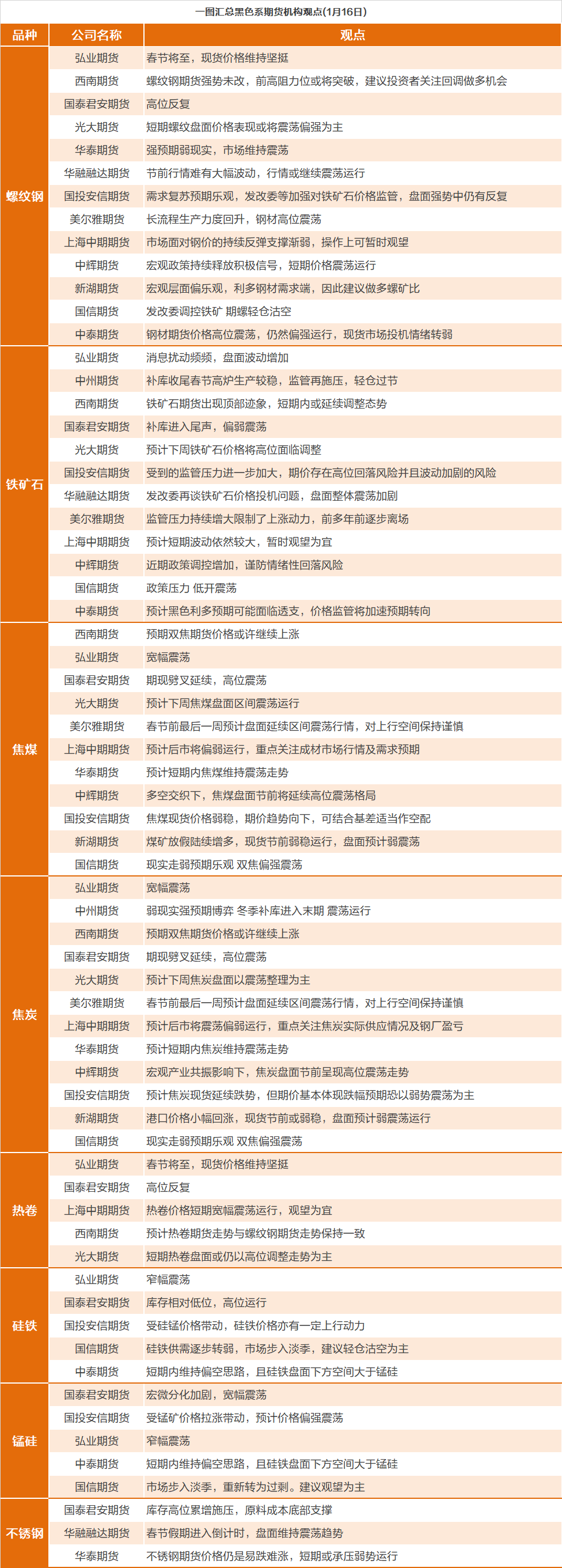 一图看懂 | 1月16日黑色系期货机构观点汇总