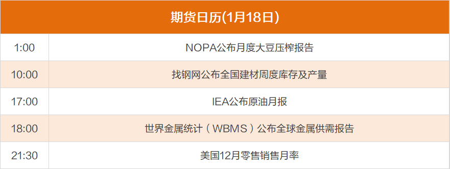 东方财富期货财经早餐 1月18日周三