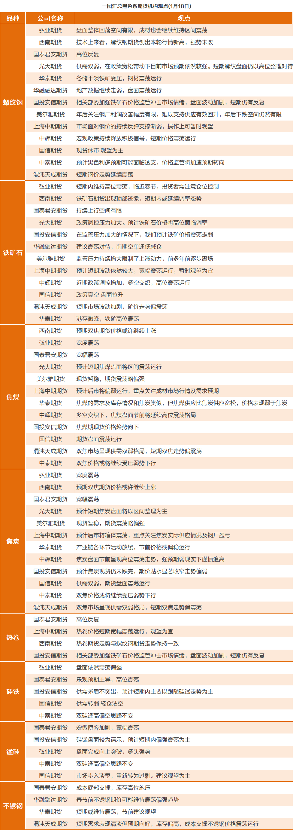 一图看懂 | 1月18日黑色系期货机构观点汇总
