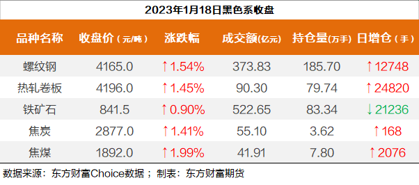 黑色持仓龙虎榜:螺纹钢涨1.54% 瑞达期货增持超1万手螺纹空单