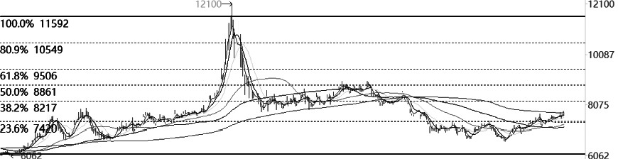 2021年10月,锰硅期货创出上市以来12100元/吨的高点之后大幅回落,直至跌至黄金分割0.382对应的8220元/吨的支撑位才止跌企稳。之后,锰硅期货经历了一段时间的窄幅振荡后再次下挫,价格临近前期6700元/吨的低点才逐步止跌反弹。目前,硅锰期货价格呈现震荡上行的走势。锰硅期货均线系统呈现多头排列,显示整体涨势保持良好。MACD指标、KDJ指标、RSI指标反复交织出现了钝化,并且MACD指标出现了较为明显的顶背离的迹象。锰硅期货主力SM2305合约的上涨伴随着增仓放量,整体上涨动能不断积聚,价格有望继续上行。锰硅期货呈现震荡上行的走势,并且上涨有量仓配合,整体偏强的格局不变。需要注意的是,锰硅期货也出现了指标顶背离的情况,不排除短期价格下挫修复指标。(新疆果业 黄李强) (责任编辑:admin) |