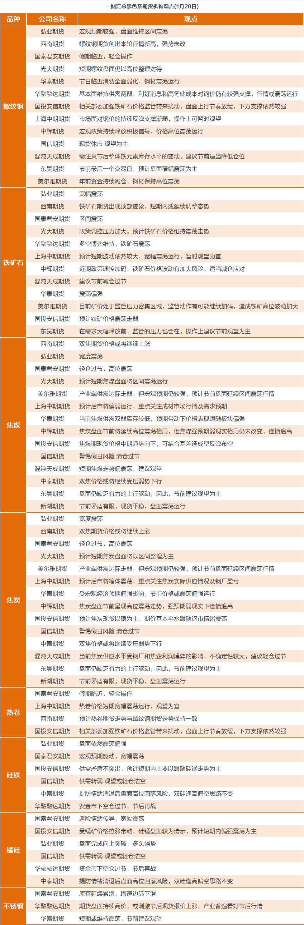 一图看懂 | 1月20日黑色系期货机构观点汇总