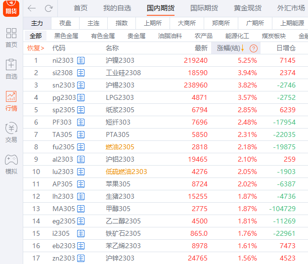 国内期货主力合约多数上涨 沪镍涨超5% 界面新闻 01月20日 国内期货主力合约多数上涨,沪镍涨超5%,沪锡、工业硅、液化石油气(LPG)涨超3%。跌幅方面,菜粕跌超2%,锰硅、菜籽、淀粉、豆粕跌超1%。 (文章来源:界面新闻) (责任编辑:admin)