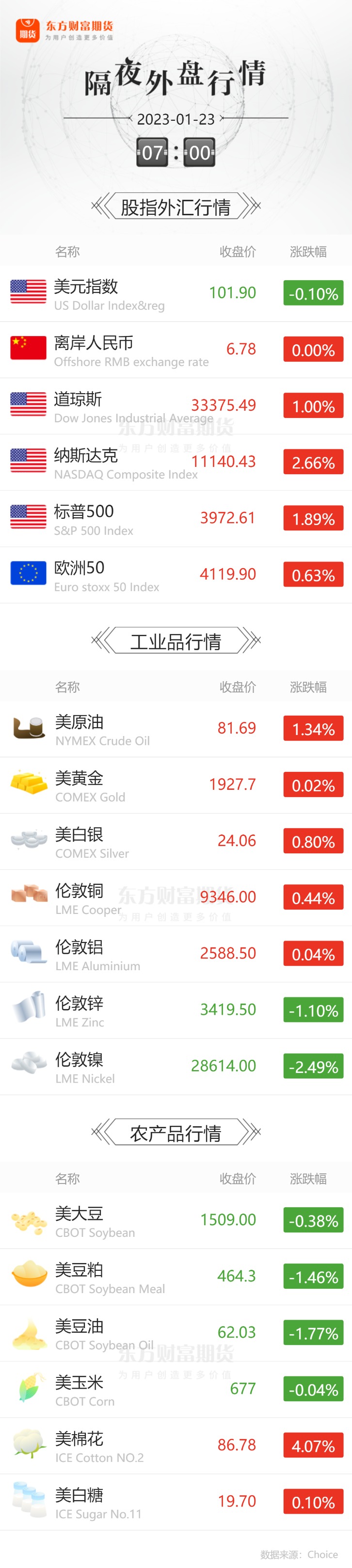 一图看懂 | 隔夜外盘行情一览(1.23)
