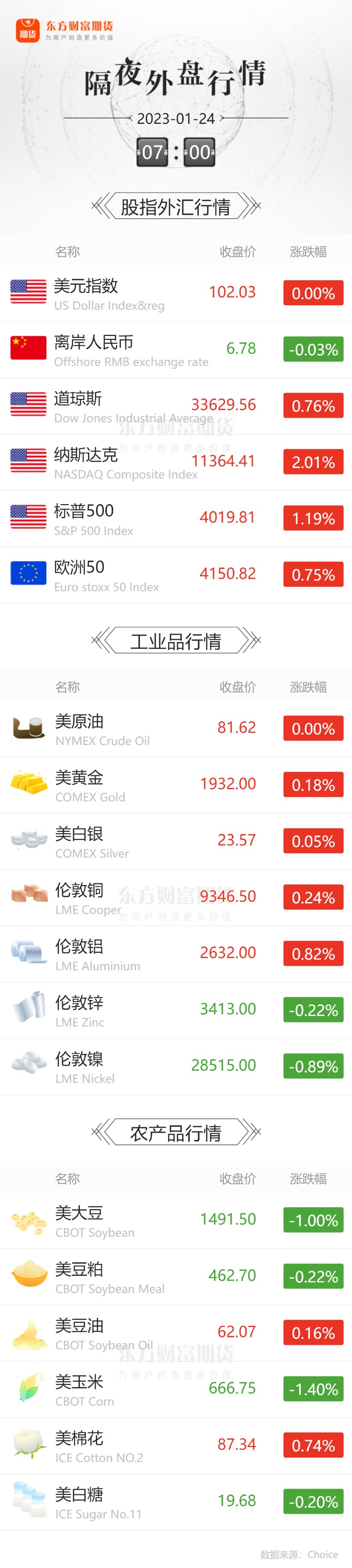 一图看懂 | 隔夜外盘行情一览(1.24)