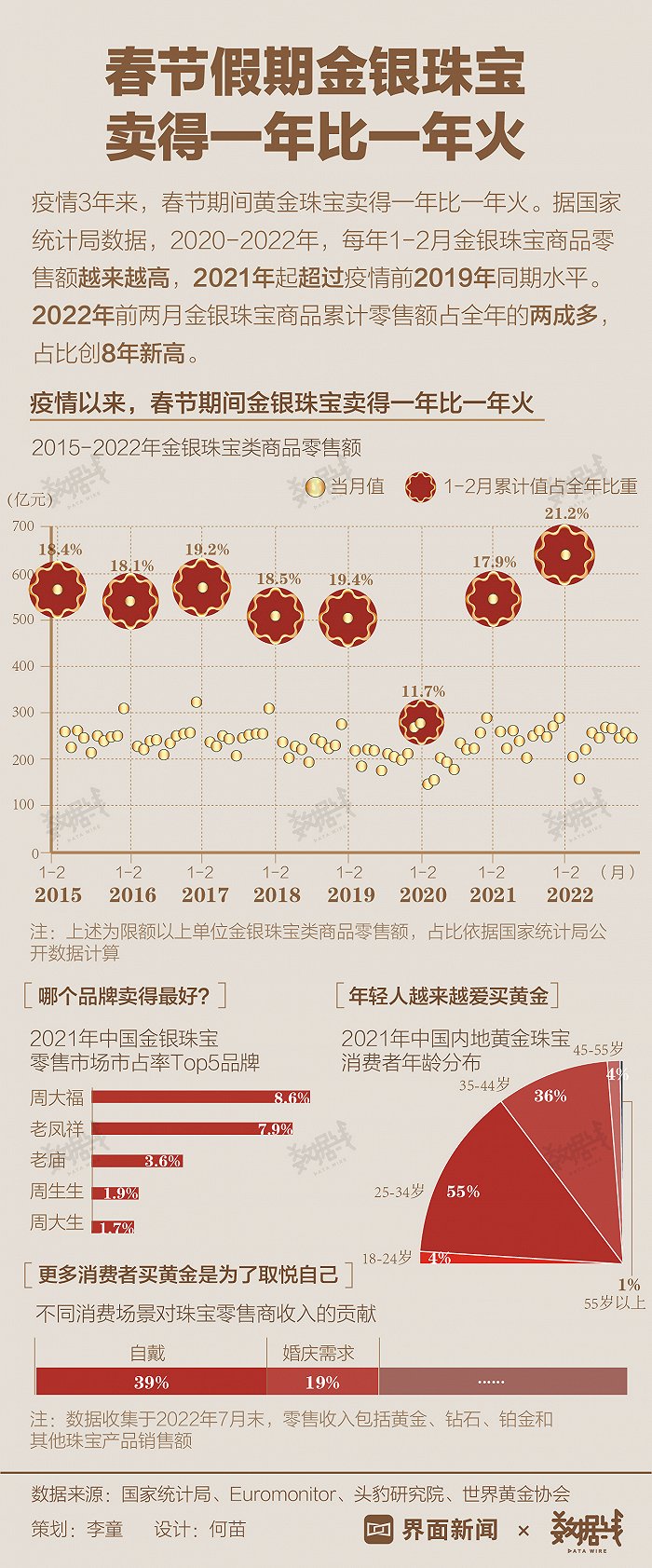 数据 | 春节假期金银珠宝卖得一年比一年火 界面新闻 01月25日 2020-2022年,每年1-2月金银珠宝商品零售额越来越高,2021年起超过疫情前2019年同期水平。 (文章来源:界面新闻) (责任编辑:admin)