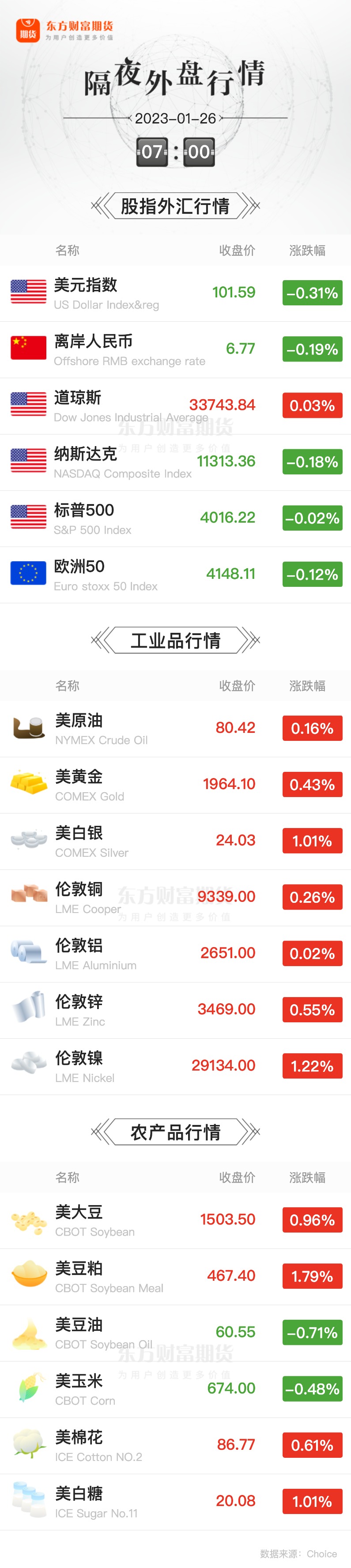 一图看懂 | 隔夜外盘行情一览(1.26)
