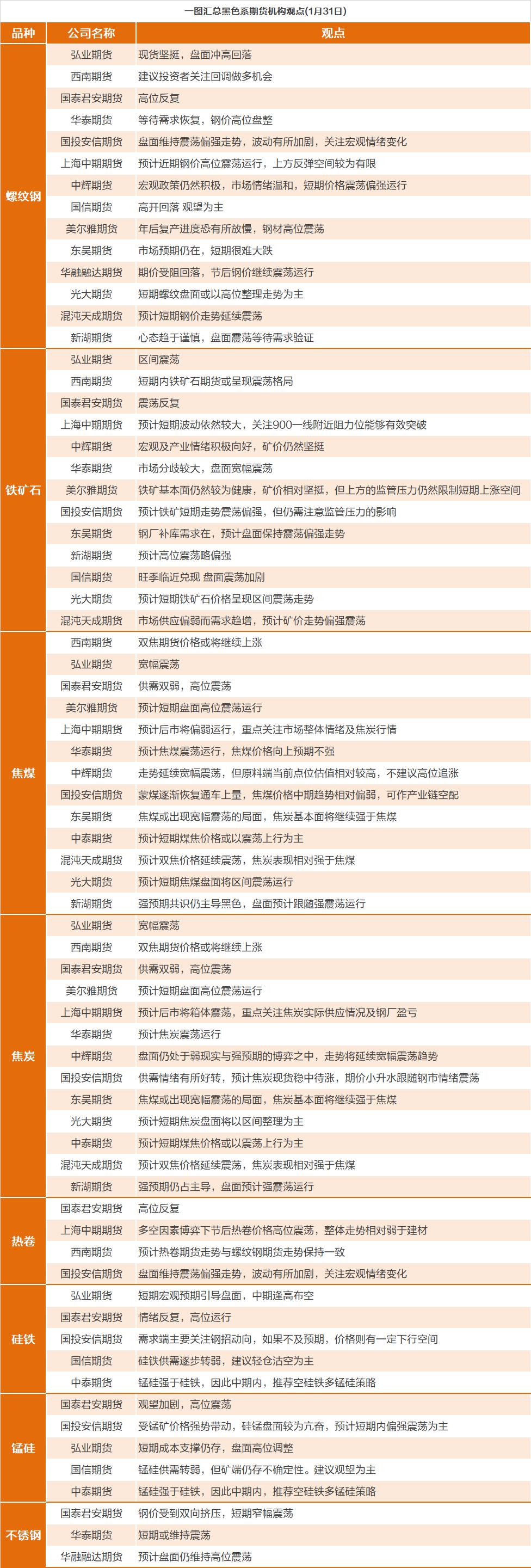 一图看懂 | 1月31日黑色系期货机构观点汇总