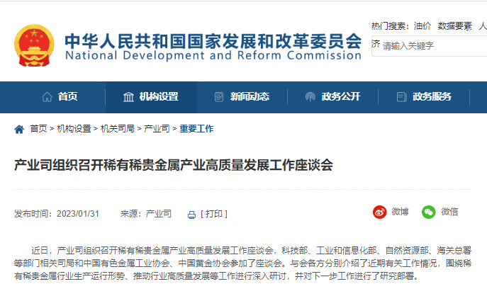 国家发展改革委产业司组织召开稀有稀贵金属产业高质量发展工作座谈会