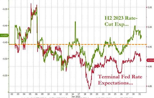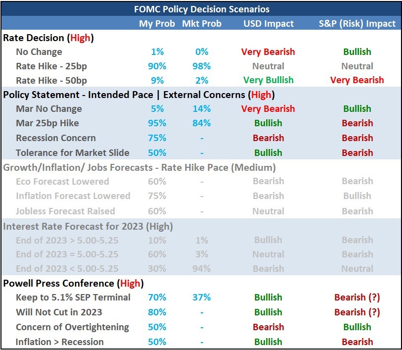 | 在新年伊始,美联储和华尔街交易员似乎陷入一场被资深市场观察人士称为史诗般的“懦夫博弈”中。而美联储主席鲍威尔今晚的亮相,可能将决定究竟谁是胜者…… 美联储将于北京时间周四凌晨3点公布1月利率决议,随后美联储主席鲍威尔将在北京时间3:30登场,主持召开例行的新闻发布会,这也将是投资者在2023年迎来的首个美联储议息夜。 去年年底,在连续四次75个基点激进加息之后,联邦公开市场委员会(FOMC)最终决定放缓了政策收紧的步伐,当月的加息幅度收窄50个基点。而随着进入新的一年后,有更多迹象显示美国通胀正进一步降温,目前市场普遍预计美联储将在今晚的会议上还将继续放慢加息脚步,料将宣布加息25个基点至4.5%-4.75%的利率区间。 根据芝商所“美联储观察”工具显示,市场对今晚25个基点加息幅度的预测,几乎被业内视作了一件板上钉钉的事。交易员预计美联储今晚加息25个基点的概率高达99.4%,维持利率不变的概率仅为0.6%,而加息50个基点的可能性则几乎不存在…… 很有意思的是,当我们回过头来看美联储自去年3月以来的加息经历,不难发现,本应是在美联储政策转变周期里最常规的利率变动幅度——25个基点,在当前的这轮紧缩周期里却是最为少见的:美联储本轮紧缩旅程中已进行过4次75个基点的加息、2次50个基点的加息。但理应最常见的25个基点的加息,至今只在最早启动加息的去年3月,进行过一次…… ![]() 因而,今晚的美联储决议,在加息25个基点悬念本身不大的背景下,其实留给人们的,更多将会是对未来联储政策的思考:当加息幅度时隔近11月重新回归最低档,美联储本轮紧缩周期,离结束还远吗? 美联储决议前瞻指南:今晚的货币政策声明会有哪些变化? 由于今晚的美联储决议并非季度性会议——将并不包含每季度更新一次的利率点阵图和经济预测。因此,当时钟来到北京时间周四凌晨3点时,投资者能获得的将只有一份美联储货币政策声明。 熟悉美联储的投资者都知道,如果政策变动不大,美联储货币政策声明的改动一般是较为乏善可陈的,这可能预示着至少凌晨3点-3点半的行情波动或将较为有限。业内对去年一整年美联储议息夜行情梳理也发现,通常3点半鲍威尔新闻发布会后的市场波动,要明显大于3点的利率决议最初发布之时。 不过,目前有一些业内人士预计,今晚美联储的货币政策声明还是可能会出现一些“微妙”的改动:最受瞩目的可能将是那句关于“继续上调目标区间将是适当的”的措辞,尤其是其中的两个词:“ongoing increases”。 ![]() (美联储12月货币政策声明原文) 美联储自2022年3月以来的每份政策声明中都包含了这句话,当时官员们刚刚开始将借贷成本从接近零的水平上调,并希望暗示未来还会有更多的紧缩政策。但眼下有市场人士认为,如果美联储继续使用这个词将不再非常贴切,因为美联储在今晚加息后,距离他们认为足以抑制通胀的“严格水平”最多也就还差50个基点——即2次25个基点的加息。 III Capital Management的Karim Basta就指出,“‘Ongoing’这个词真的只包含两次加息吗?这是一个至关重要的决定。”不过他也表示,对于任何可能助长市场预计加息即将暂停的行为,美联储“将表现出一些谨慎”。 在历史上,美联储政策制定者确实通常会通过政策声明语言的微妙变化,来暗示不确定性增加和政策的潜在转折点。这些变化旨在勾勒出最可能的前进道路,而不是将其锁定。例如在2018年时,美联储对当年12月的声明进行了调整,称该委员会“判断”,而不是“预计”目标利率将“进一步逐步上调”至与其目标一致,这最终标志着那轮加息的结束。 目前,华尔街对于美联储今晚的声明措辞是否会作出上述调整,观点整体不一。法国巴黎银行分析师认为,美联储将删除“持续加息”的措辞,转而暗示不再机械性执行加息、但利率仍可能进一步走高。 但Nationwide首席经济学家Kathy Bostjancic则表示,“这是一个非常微妙的问题,我认为他们最好不要作出改变。他们应该不希望金融状况较目前明显宽松。” 今晚美联储决议的重头戏:仍是鲍威尔的表态? 如果最终今晚美联储货币政策声明并未出现明显的改动,那么交易员们想必会在更为坎坷不安的心态中,迎接半小时后美联储主席鲍威尔的登场。 在许多业内人士看来,今晚鲍威尔的讲话其实会有很多的看点,例如: ①鲍威尔需要解释:在今晚加息后,美联储接下来还会加息多少? 美联储政策制定者近几个月来一直坚持认为,联邦基金利率必须升至5%以上。美联储12月的点阵图就显示,其内部19位官员中有17位赞成将利率水平推高至5%以上的水平。 这将意味着在今晚加息后,美联储在3月和5月还要各加息25个基点。但金融市场目前的利率定价却并未超过5%——最新约为4.915%,这相当于仅仅定价了3月的大概率加息。 ![]() 掉期市场对未来两个月的利率定价显示,3月份继续加息25个基点的可能性为83%,5月份加息25个基点的可能性为42%…… ![]() 因而,尽管没有利率点阵图,但投资者显然仍将会希望从鲍威尔的口中得知,美联储本轮加息周期的峰值究竟会落在哪?在DailyFX分析师John Kicklighter看来,美联储主席鲍威尔可能仍会有七成概率维系12月点阵图5%以上的终端利率预期,如果维持相对鹰派的终端利率定价,料将利好于美元、利空美股。 ![]() 而野村证券经济学家则认为,在核心通胀率可能连续3个月降温