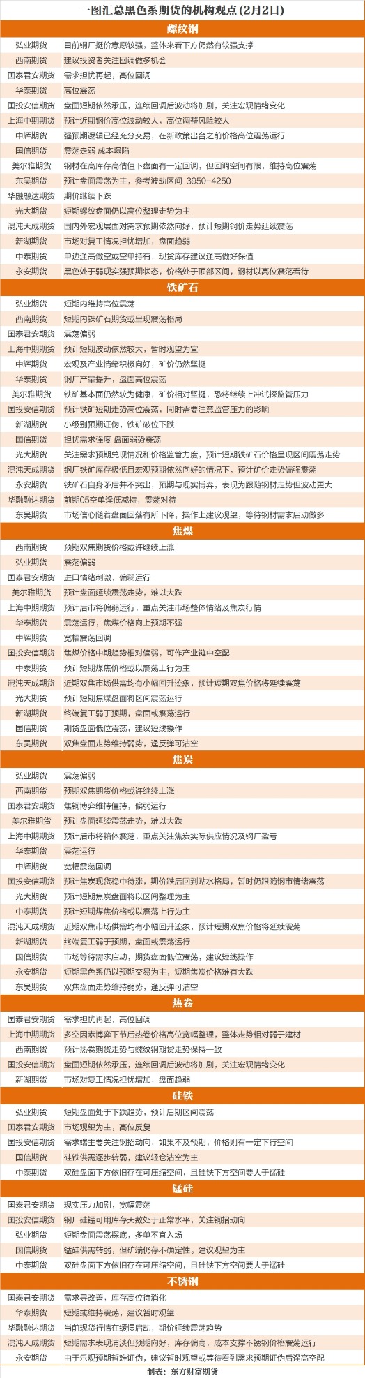 一图看懂 | 2月2日黑色系期货机构观点汇总