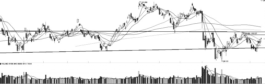 十债加权上周在振荡区间下沿处受到支撑,说明该区间较为有效。均线方面,MA5、MA10先后拐头向上,MA20开始走平,MA60仍然向下,十债加权上方依然受到中周期移动平均线的压力。指标方面,MACD出现红柱,但DIF与DEA仍在0轴之下,十债加权仍处于修复指标的阶段。整体看,十债加权当前小周期上有压力下有支撑,延续区间运行的概率较大。(招商期货 于虎山) (责任编辑:admin) |