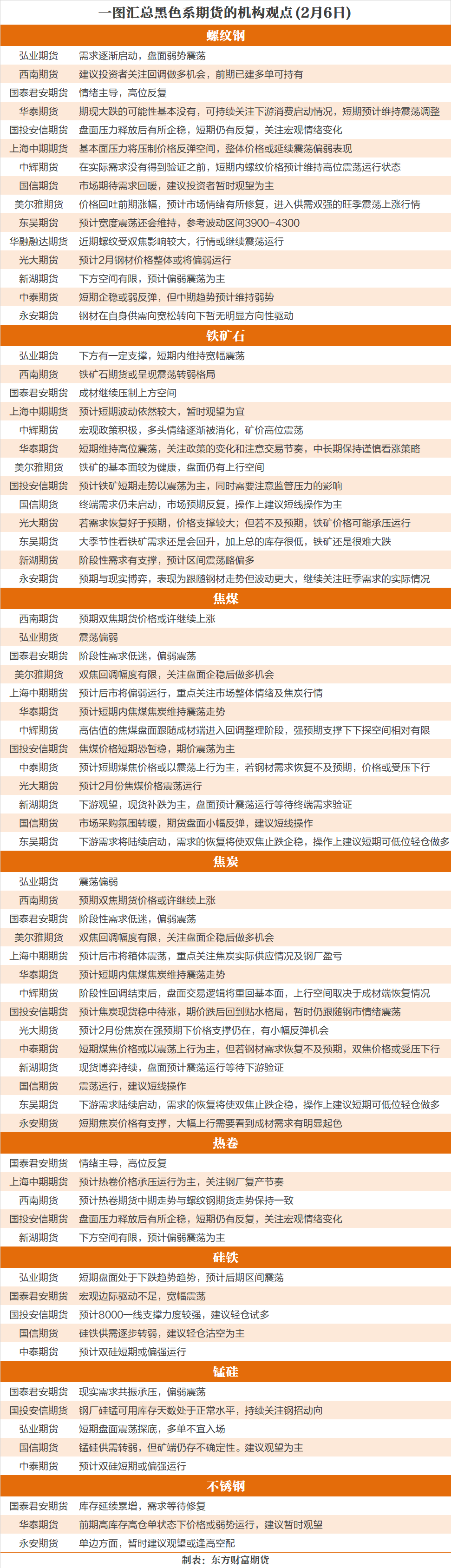 一图看懂 | 2月6日黑色系期货机构观点汇总