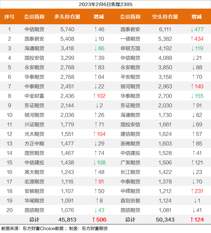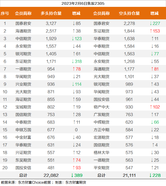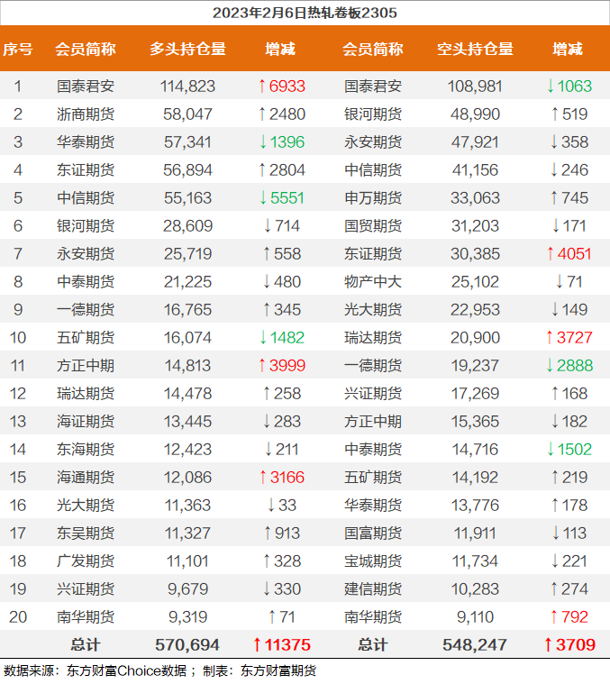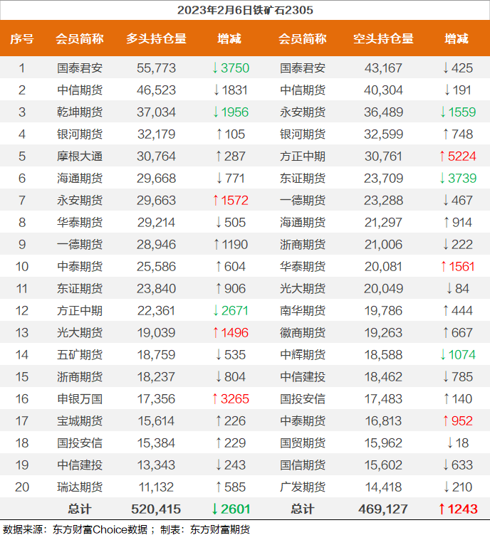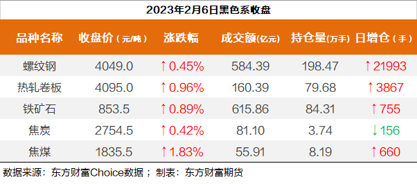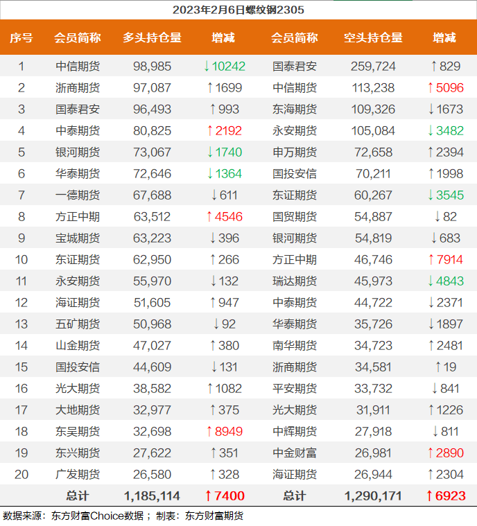 | 截至2月6日收盘,螺纹钢2305收4049/吨,涨0.45%;热卷2305收4095/吨,涨0.96%;铁矿石2305收853.5元/吨,涨0.89%;焦炭2305收2754.5/吨,涨0.42%;焦煤2305收1835.5元/吨,涨1.83%。 螺纹钢2305合约前20席位多单增仓7400手至118.5万余手,空单增仓6923手至129万余手,整体呈净空105057手。其中,中信期货多单减持10242手,空单增持5096手,整体呈净空14253手。 各品种具体如下: ![]() 各品种持仓情况具体如下: ![]() ![]() ![]() ![]() ![]() (文章来源:东方财富研究中心) (责任编辑:admin) |