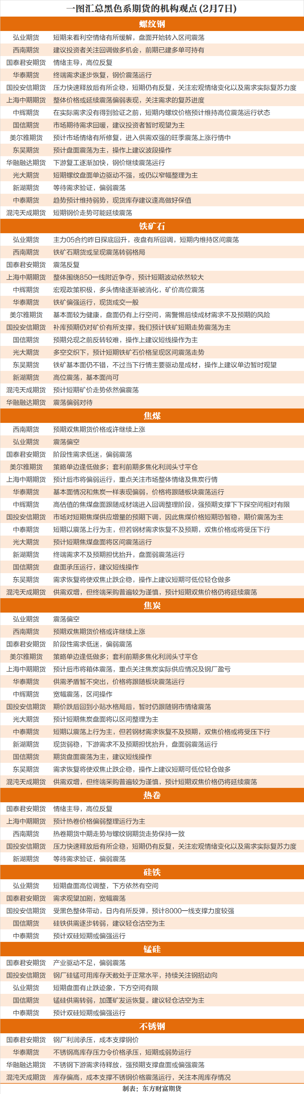 一图看懂 | 2月7日黑色系期货机构观点汇总