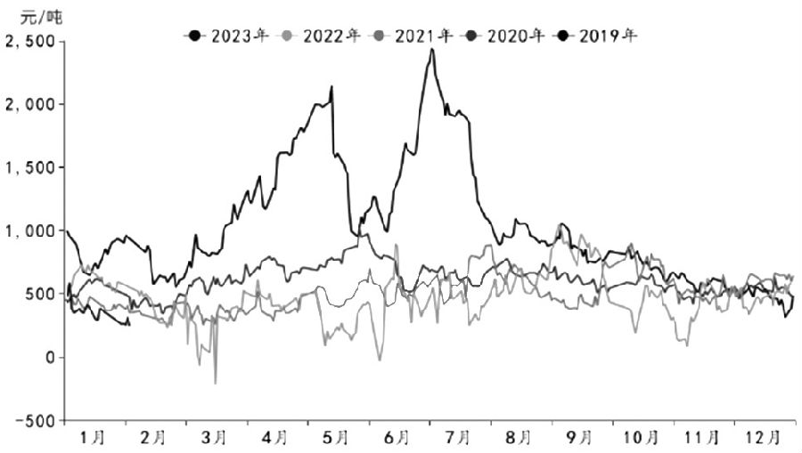 图为美国海湾芳烃价格 尽管从图形上看,MX和甲苯价格较2022年年中有明显回落,但是依旧处于近几年的偏高水平,短期的快速下跌可能与原油价格和汽油裂解价差走低有关。 [2] [美亚套利窗口暂时关闭] 2022年4月,美国调油组分市场矛盾凸显,导致美韩芳烃价差快速走高,套利空间迅速扩大,韩国至美国的芳烃贸易量放大,亚洲芳烃价格开始走强,至下半年美国调油需求减弱后转为急剧下跌。2022年四季度,由于亚洲芳烃价格快速回落,美韩芳烃套利窗口再度打开,部分调油组分贸易流产生。韩国海关发布的数据显示,2022年12月有3万吨甲苯出口至美国。 2023年1月,美国调油组分价格平稳,亚洲表现偏强,两地芳烃价差持续收窄。上周,因美国芳烃价格大跌,美亚芳烃价差大幅走弱,目前回落至200美元/吨以内。芳烃区域套利窗口暂时关闭,美国调油逻辑对亚洲芳烃市场的直接利多阶段性减弱。 [3] [芳烃产品走势存在差异] 2023年以来,虽然有盛虹、广东石化、威联石化等多套装置投产,但是芳烃价格表现依旧偏强,尤其是PX。春节前后,PX—石脑油价差从300美元/吨走高至380美元/吨后略有回落,纯苯—石脑油价差从2022年11月底的100美元/吨低位攀升至285美元/吨以上。由此可见,芳烃板块整体表现偏强。我们认为,主要是春节前市场普遍乐观的预期令二者同步走高。春节长假期间,国内下游装置开工提升,加之汽油需求向好,导致芳烃抽提比例下降等利多因素共振。然而,春节后市场氛围转向,由全面乐观转为谨慎,等待下游需求向好兑现,PX和纯苯价格也因此回落。 虽然PX和纯苯价格长线走势大致趋同,但是也存在强弱差异。2022年三季度以来,持续累库压力导致纯苯价格走弱,PX受到原料供应紧张的影响,相对纯苯略显坚挺,这种局面延续至今。春节期间,国内PTA装置负荷提升明显,导致PX走势更强。从生产工艺来看,PX主要有长流程的芳烃联合和短流程的甲苯歧化及MX异构化等几种来源,原料甲苯和二甲苯更多倾向于调油,芳烃抽提比例下降可能在后市继续影响PX供应。 另外,PX供应和柴油市场的表现有直接关联,2022年曾出现过柴油裂解强势导致PX装置减产的情况。纯苯则是炼油二次装置的副产品,并且不能直接用于汽油调和。因此,虽然芳烃价格走强对PX和纯苯来说都会有利多提振,但是从生产和需求来看,PX受到该逻辑的影响应该更直接。 [4] [下游加工差仍然承压] 春节后,PX和纯苯并未延续春节期间的强势,其下游PTA和苯乙烯也以高开低走为主,二者加工差都有不同程度的回落,主要是受供应增长而下游需求尚未恢复的基本面拖累。PTA加工差降至历年同期低位水平,可能引发后市集中检修的利多。苯乙烯目前依旧有小幅盈利,后市存在库存上升的压力,短期价格有继续调整的空间。不过,从中期来看,在加工差降至低位后,成本支撑将显现,PTA和苯乙烯都将面临二季度成本推涨的利多,其中芳烃调油逻辑能否再现值得关注。如果叠加装置检修及消费恢复的利多,那么PTA和苯乙烯价格或再度出现季节性上涨。