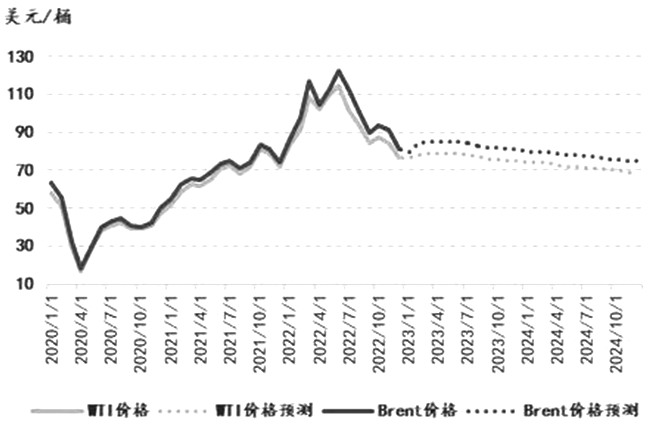A EIA月报 油价预测 EIA预计2023年WTI原油均价为77.18美元/桶, 较2022年12月预估减少9.18美元/桶;预计2023年Brent原油均价为83.10美元/桶,较2022年12月预估减少9.26美元/桶。 供应预测 EIA预计2023年全球石油供应同比增加112万桶/日至10110万桶/日, 较2022年12月预估增加4万桶/日。其中,2023年非OPEC石油产量预计同比增加97万桶/日,较2022年12月预估增加30万桶/日。除美国外,非OPEC国家的石油产量增长主要来自加拿大、巴西、圭亚那和挪威。预计TransMountain管道扩建项目的启动将推动加拿大石油产量的增长,巴西石油产量的增长主要受新的FPSO深水钻井平台推动;圭亚那在2019年发现新的海上深水Liza油田后首次开始生产石油,关键投资和新的生产船舶帮助圭亚那的石油产量在2022年增加到平均26万桶/日,预计未来两年内产量将进一步增加,新的石油资源将进一步开发,从而帮助圭亚那在2024年四季度将石油产量提高到平均54万桶/日;2023年挪威石油产量的增长源于最近海上Johan Sverdrup二期扩建项目的启动,这将导致挪威的液体燃料产量比预测的增加50多万桶/日,到2024年达到近250万桶/日。 EIA预计2023年OPEC原油产量同比增加19万桶/日至2887万桶/日,较2022年12月预估减少20万桶/日。继2022年11月美国财政部颁发通用许可证(GL)后,雪佛龙公司恢复了在委内瑞拉的石油生产以出口到美国。 EIA预计2023年美国原油产量同比增加55万桶/日至1241万桶/日, 较2022年12月预估增加8万桶/日。 EIA预计2023年俄罗斯石油产量同比减少145万桶/日至949万桶/日,较2022年12月预估减少1万桶/日。欧盟制裁、其他制裁和G7价格上限将在多大程度上影响俄罗斯原油和石油产品的出口和生产仍不确定,俄罗斯的大部分原油出口将继续寻找买家,但针对石油产品的制裁将对俄罗斯的石油生产和出口造成更大的干扰,因为寻找石油产品的替代买家以及运输和其他服务可能比原油更具挑战性。 需求预测 EIA预计2023年全球石油需求同比增加105万桶/日至10049万桶/日,较2022年12月预估增加5万桶/日。EIA预计全球石油需求的增长将在2023年放缓,然后在2024年回升,因全球GDP增长将从2023年的1.8%上升到2024年的3.3%。尽管全球石油消费量预计增加,但全球经济状况持续令人担忧,需求预测仍存在不确定性。 供需平衡 EIA预计2023年全球石油供需过剩61万桶/日,较2022年12月预估增加37万桶/日。 B OPEC月报 世界经济 鉴于各主要经济体在2022年下半年经济表现好于预期,2022年世界经济增长预测小幅上调至3%,2023年全球经济增长预期维持在2.5%不变。美国2022年和2023年的经济增长预测分别上调至2%和1%。2022年欧元区经济增长预测上调至3.2%,2023年为0.4%。日本2022年经济增长预测下调至1.2%,2023年维持在1%。中国经济增长预测保持不变,2022年为3.1%,2023年为4.8%。印度2022年经济增长预期上调至6.8%,但2023年仍维持在5.6%。巴西2022年经济增长预期上调至2.8%,2023年维持在1%不变。在高通胀、全球主要央行货币紧缩和许多地区主权债务水平高企的情况下,地缘政治和新冠疫情相关风险和不确定性可能会增加部分经济体的下行风险。 2022年12月OPEC产量 2022年12月,OPEC的原油产量为2897.1万桶/日,较2022年12月增加9.1万桶/日。主要的原油产量增加国是尼日利亚(增加9.1万桶/日)、安哥拉(增加4.2万桶/日)、利比亚(增加1.7万桶/日)和委内瑞拉(增加1.3万桶/日),而科威特(减少3.5万桶/日)、刚果(减少1.8万桶/日)和阿尔及利亚(减少1.1万桶/日)的原油产量下降。 供应预测 OPEC月报预计2023年非OPEC石油供应同比增加154万桶/日至6716万桶/日,较2022年12月预估不变。预计2023年供应增长主要来自美国、挪威、巴西、加拿大、哈萨克斯坦和圭亚那,而产量的下降预计主要发生在俄罗斯和墨西哥,但2023年地缘政治形势和美国页岩油产量仍具有很大不确定性。OPEC月报预计2023年美国石油产量同比增加115万桶/日至2019万桶/日,预计2023年俄罗斯石油产量同比减少85万桶/日至1018万桶/日。 需求预测 OPEC月报预计2023年全球石油需求同比增加222万桶/日至10177万桶/日,与2022年12月预估持平。石油需求增长仍将受到经济活动、防疫政策和地缘事件等不确定性的影响。 供需平衡 OPEC月报预计2023年Call>C IEA月报 库存水平 2022年11月IEA观察到的全球石油库存环比激增7910万桶,为2021年10月以来的最高水平。非OECD组织的陆上石油库存和浮仓库存当月增加了4390万桶,其中浮仓库存增加了3810万桶。由于政府释放的战略石油储备抵消了行业库存的小幅增加,OECD组织的库存略有下降。截至2022年11月底,非OECD组织石油库存同比增加7530万桶,而OECD组织国家石油库存减少2.329亿桶,同期政府释放了2.695亿桶石油储备。由于俄罗斯出口的石油被转移到更远的买家手中,浮仓石油库存同比增加了1.81亿桶。 供应预测 IEA预计2023年全球石油供应同比增加100万桶/日至10110万桶/日,较2022年12月预估增加20万桶/日。IEA预计2023年非OPEC石油供应同比增加70万桶/日至6640万桶/日,较2022年12月预测增加10万桶/日。IEA预计2023年美国石油产量同比增加97万桶/日至1896万桶/日,维持2022年12月预估不变。 基于欧盟对俄罗斯原油和产品禁运以及七国集团价格上限的影响,预计2023年OPEC+联盟的原油产量将同比下降,最大的问题在于俄罗斯的产出会下降多少。与2022年相比,沙特阿拉伯及其海湾邻国的供应预计将大体稳定。巨大的上涨潜力主要存在于利比亚、尼日利亚和哈萨