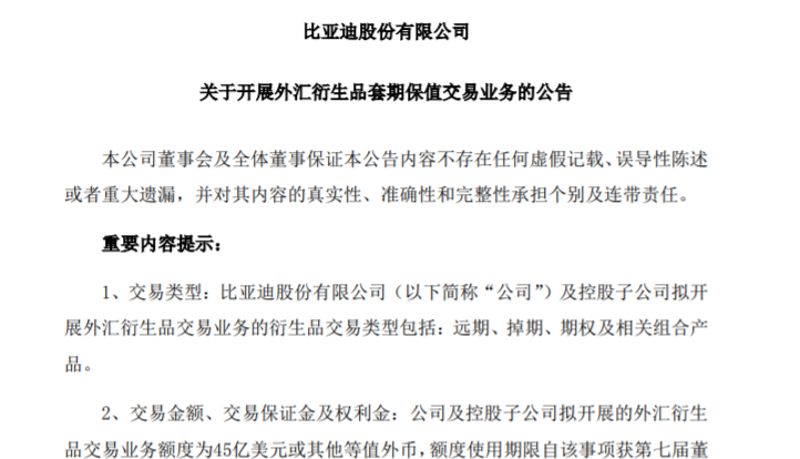 外汇套保热!开年来十多家上市公司发公告!305亿元 比亚迪套保额度再“加码”!