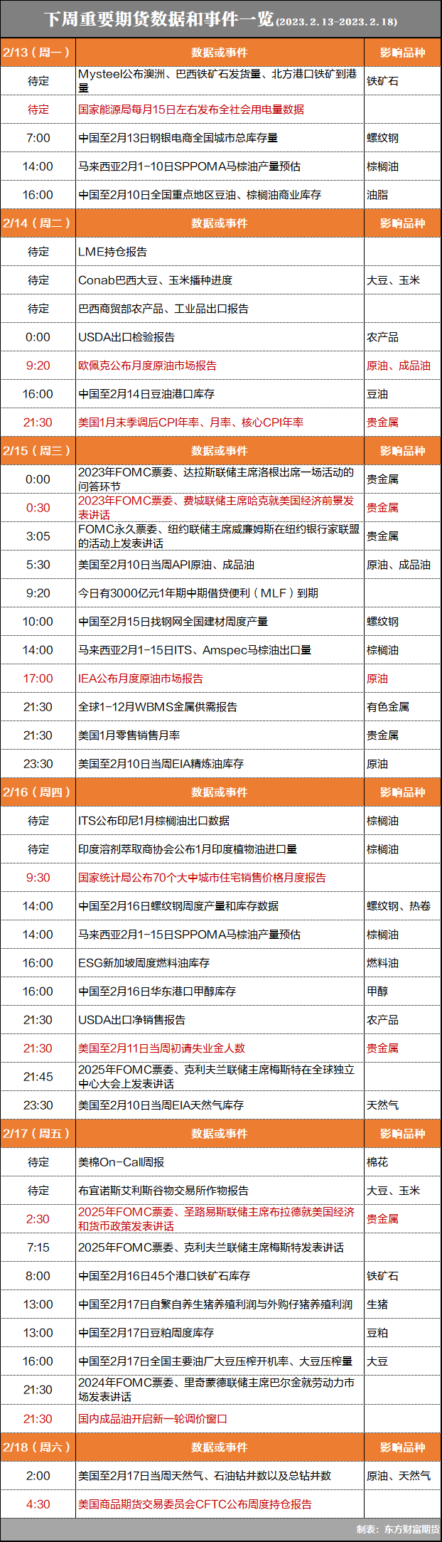 【期货日历】下周待关注的期货数据和事件一览