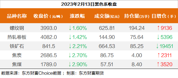 黑色持仓龙虎榜:黑色系全线飘绿 银河期货减持1.3万手螺纹多单