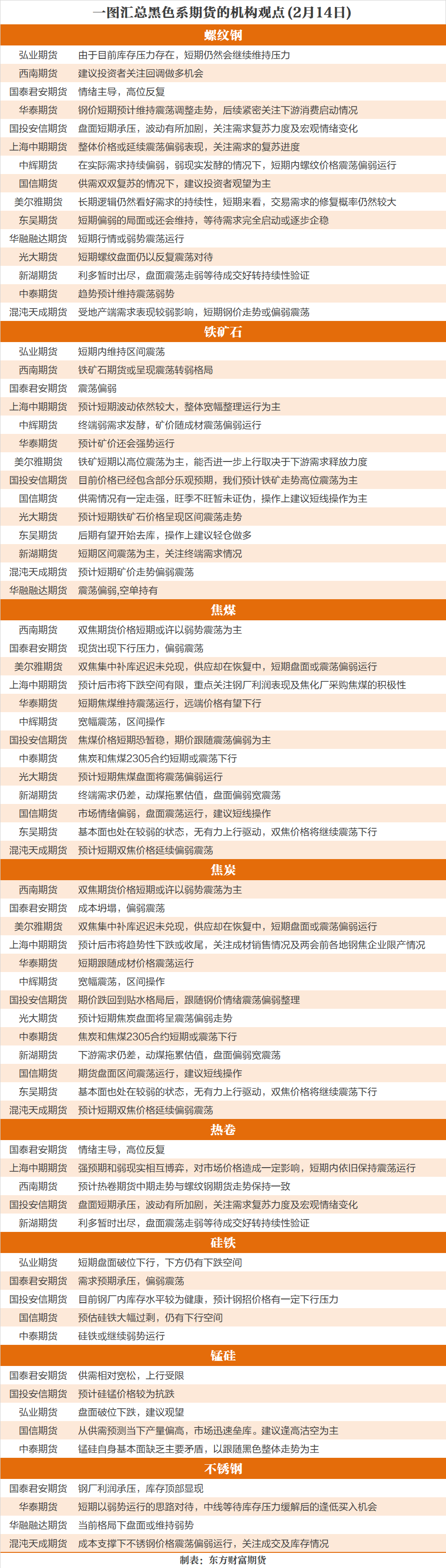 一图看懂 | 2月14日黑色系期货机构观点汇总