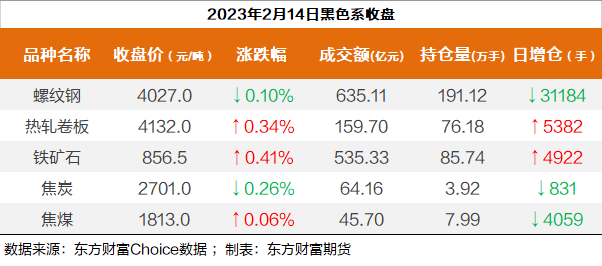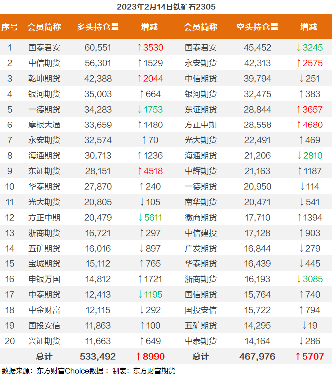 黑色持仓龙虎榜:铁矿石涨0.41% 国泰君安期货减持近1.6万手螺纹空单