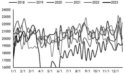 图为俄罗斯油品供应季节性(单位:万桶/日)