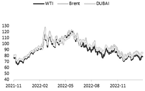 图为原油价格走势 供应收紧+需求回暖筑底油价 在俄罗斯宣布减产之前油价已经从低位持续快速反弹,而油价回暖的直接导火索是土耳其地震等因素引发的供应端收紧。由于土耳其的杰伊汉BTC港口受地震影响关闭,约65万桶/日的阿塞拜疆原油与约40万桶/日的伊拉克原油出口受阻。同时,技术故障和电力供应减少导致挪威的Johan Sverdrup油田部分停产,大约影响50万桶/日的产量;哈萨克斯坦也因为油田检修减产20万桶/日。在全球原油供应收紧背景下,俄罗斯的减产将会改变市场预期。 需求方面,天气回暖后北半球石油需求出现季节性增加,成品油消费端无论是出行还是工业用油都处于上升通道。此外,中国原油需求的复苏被全球看好,IMF在最新的报告中上调了中国经济增长预期。同时,EIA连续2个月上调今年全球原油需求预期,并强调由于在中国防疫政策的重大调整下,全球原油需求增长主要受到中国和其他非经合组织国家需求驱动。在全球原油市场供应收紧和需求回暖的同时作用下,油价下行压力进一步减轻,并会形成坚实的底部。