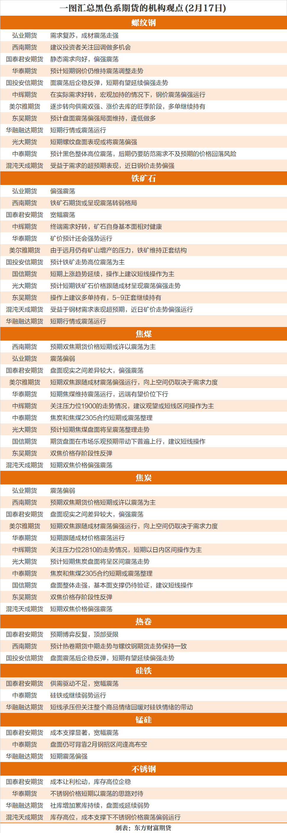 一图看懂 | 2月17日黑色系期货机构观点汇总