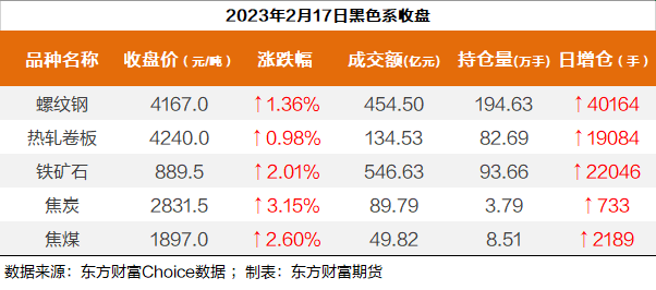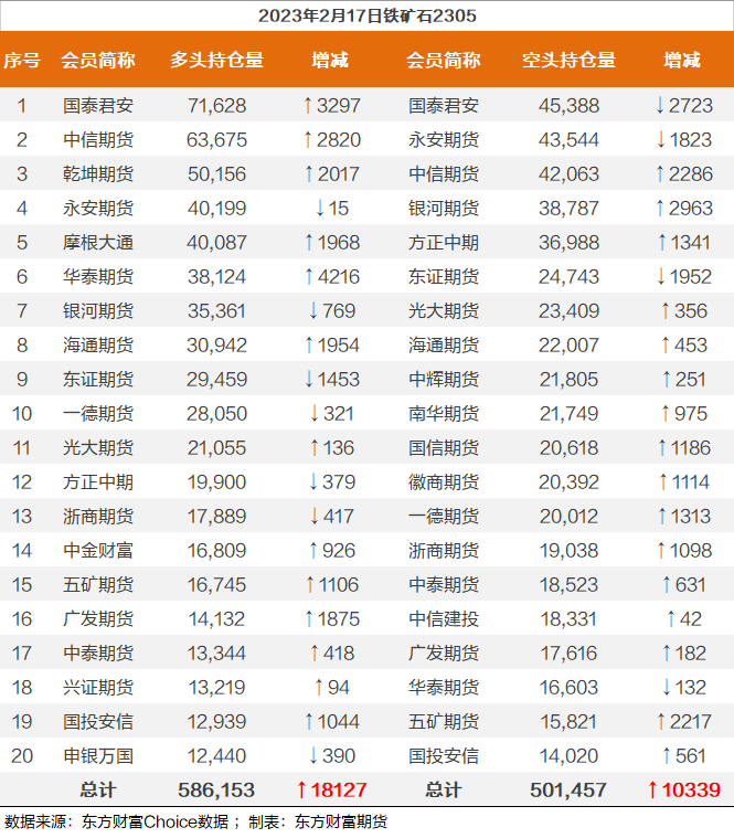 黑色持仓龙虎榜:铁矿石涨2.01% 中信期货增持超7千手螺纹多单