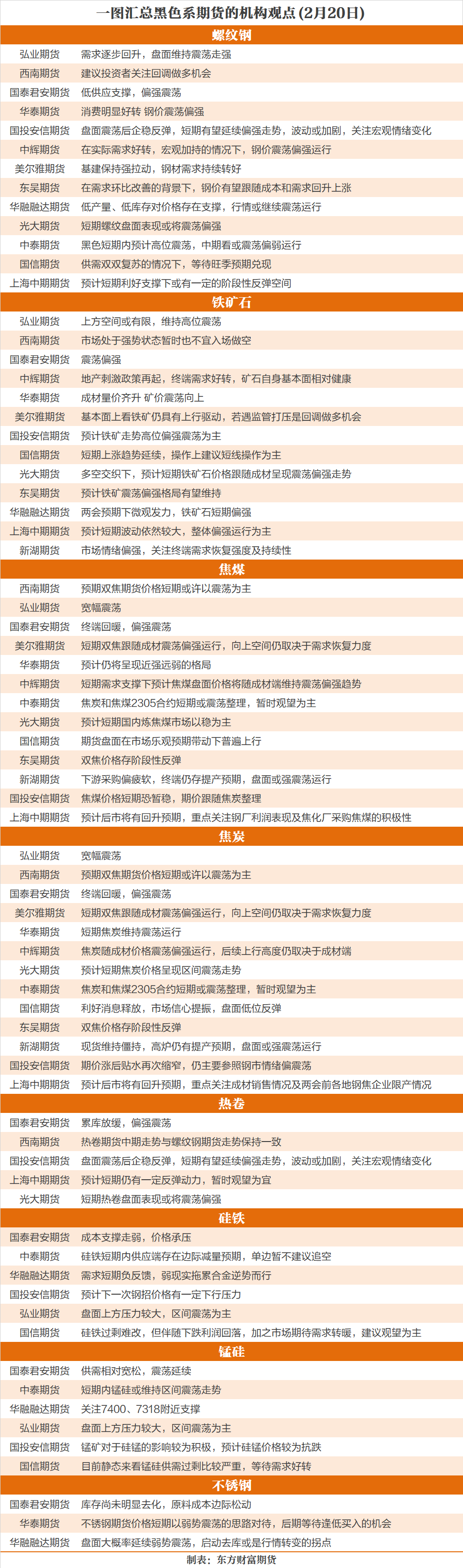 一图看懂 | 2月20日黑色系期货机构观点汇总
