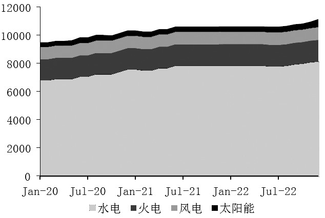 图为云南电力结构 水电占主导地位的电力结构使得云南的电力波动非常大。当水力发电出现问题时,虽然发电弹性较大的火电会被作为首选进行电力调峰,但通常火力发电成本较高而无法长时间使用,因此云南的电力供应通常具有较大的波动性。比如2022年8月,西南地区遭遇极端的持续高温干旱天气,造成水电来水偏少近五成,云南的电力供应遇到极大挑战。进入2023年,云南又因枯水期水位不足而用电需求较高,导致电力缺口重新显现。