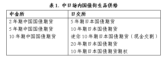 二、中金所与日交所国债衍生品市场概览 与国债现货市场相一致,中日两国场内国债衍生品市场也较为活跃,中金所和日交所挂牌的国债衍生品详见下表。
