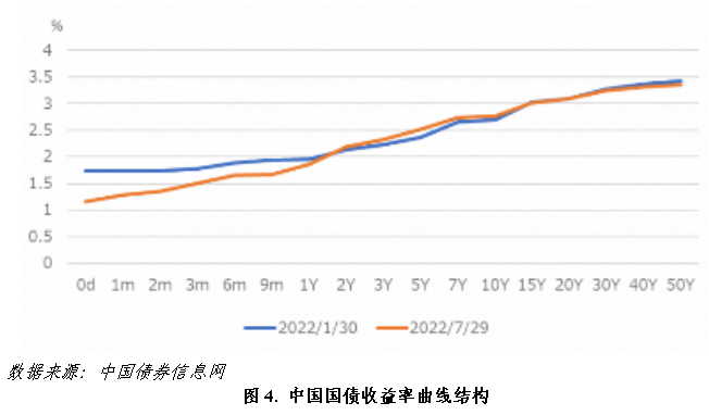 中国人民银行实施稳健货币政策,通过公开市场操作调控中短端利率、7天逆回购利率及1年期中期借贷便利等政策利率。例如2022年2月至7月,中国CPI同比增速由0.9%上升至2.7%。然而,如下图所示,受银行体系流动性合理充裕影响,短期利率水平在过去六个月内持续下行。