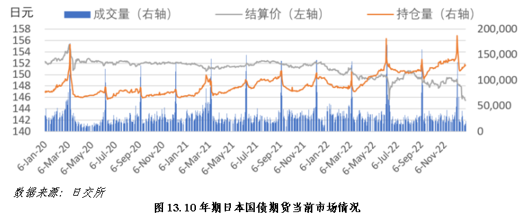 关于10年期日本国债期货价格的走势,2020年3月和2022年6月经历了两次较大的价格波动。2020年3月,在新冠肺炎疫情爆发初期,日本国债期货价格大幅上升,但随着日本央行立刻做出反应、放松货币政策,价格随之回落。2022年6月,面对通胀压力攀升和全球加息潮,日本央行宣布实施0.25%的长期利率上限,海外投机力量随之大量卖出日本国债期货,引发价格大幅下跌。