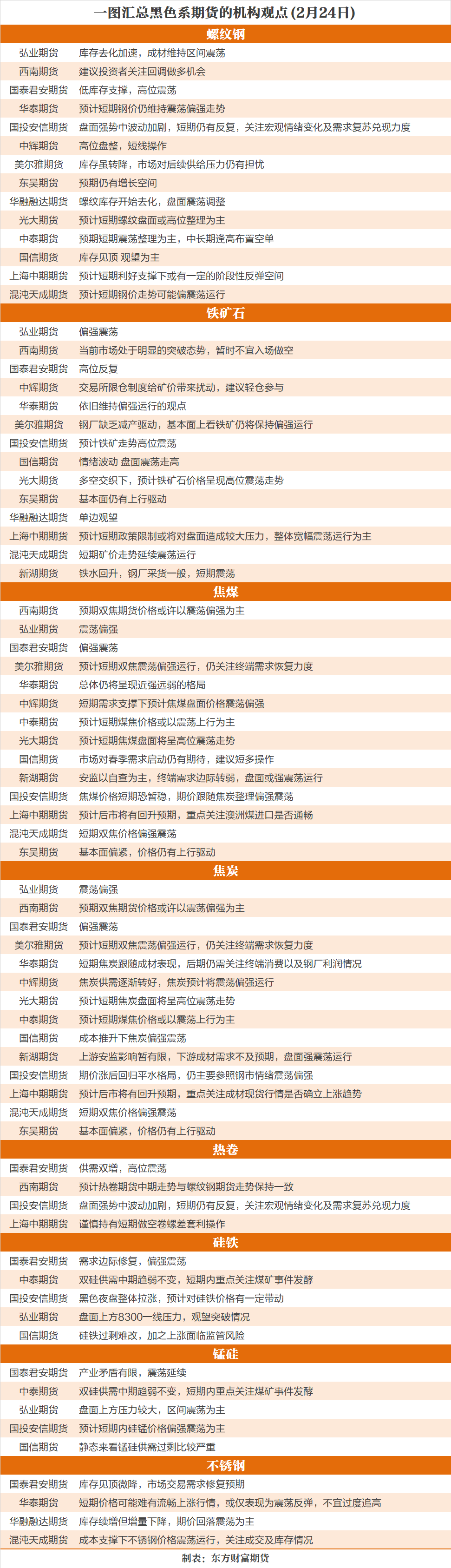 一图看懂 | 2月24日黑色系期货机构观点汇总