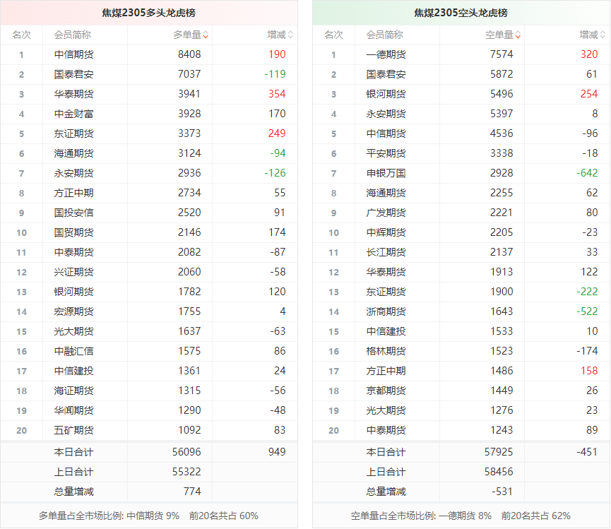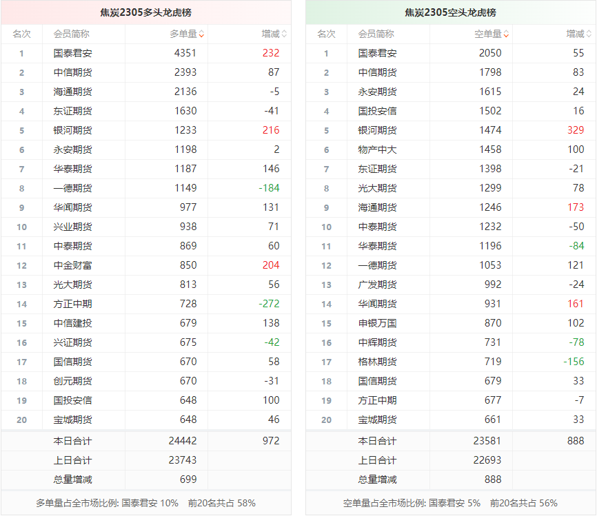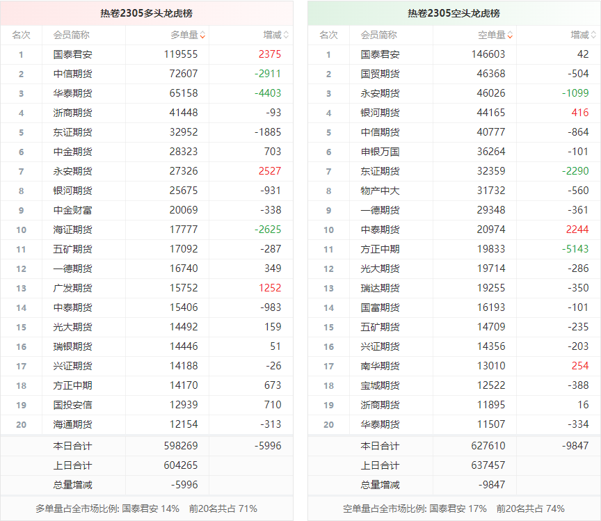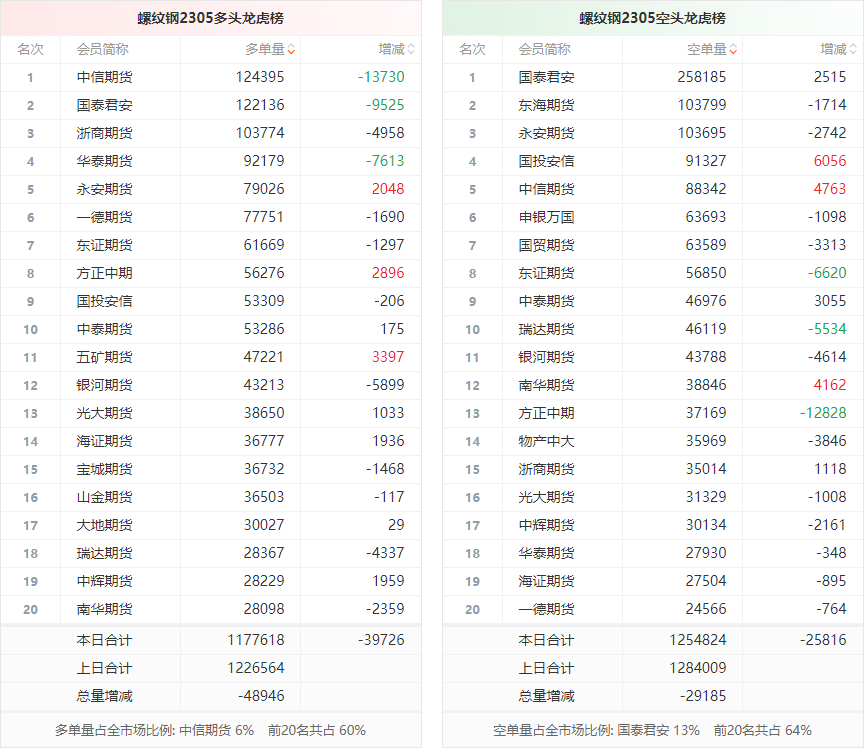 截至2月27日收盘,螺纹钢2305收4191/吨,跌0.64%;热卷2305收4277/吨,跌0.16%;铁矿石2305收885.5元/吨,跌2.53%;焦炭2305收2938/吨,持平;焦煤2305收2064元/吨,涨1.15%。 螺纹钢2305合约前20席位多单减仓39726手至117.7万余手,空单减仓25816手至125.4万余手。其中,中信期货多单减持13730手,空单增持4763手,整体呈净多36053手。 各品种具体如下: ![]() (来源:东方财富期货PC端) 各品种持仓情况具体如下: ![]() ![]() ![]() ![]() ![]() (文章来源:东方财富研究中心) (责任编辑:admin) |