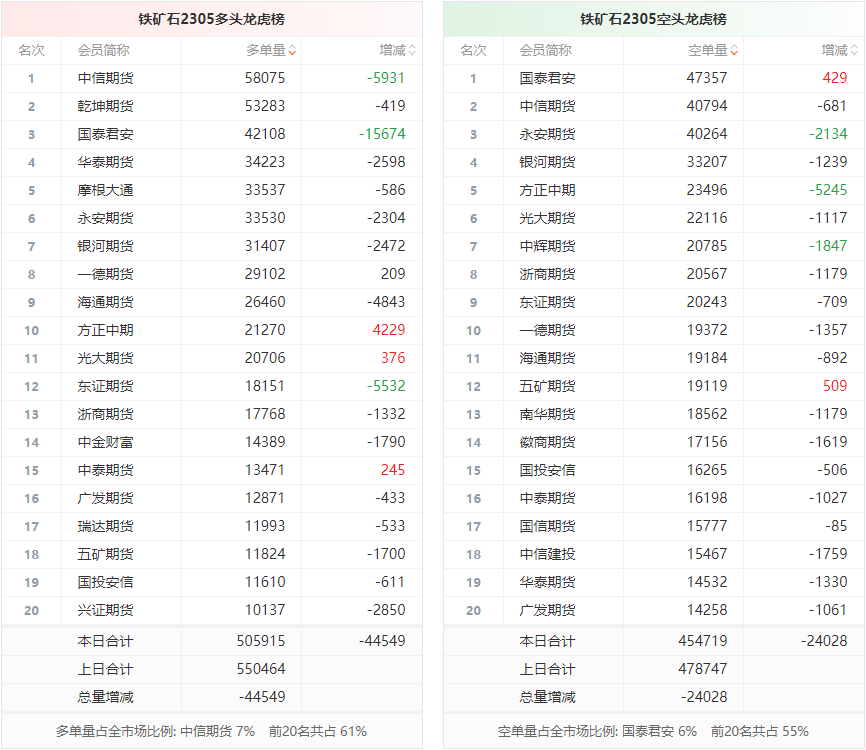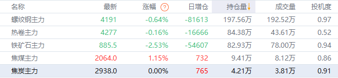 黑色持仓龙虎榜:铁矿石跌2.53% 中信期货减持近1.4万手螺纹多单