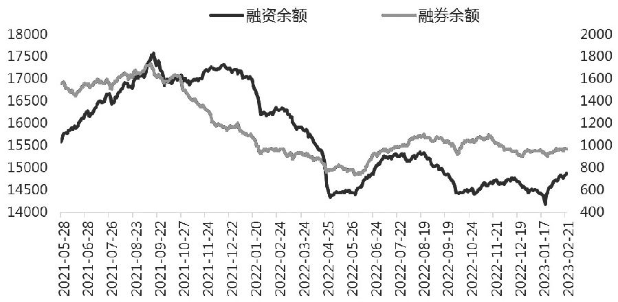 图为IM/IC和IM/IH比价 2月份以来,随着美元阶段性重回强势,人民币升值进程受阻,此前海外向国内权益市场流入的增量资金净流入速度边际递减。春节后股市融资余额逐步上升,反映出杠杆资金对股市的看好情绪,特别是对中小盘股票的资金面支撑作用较为明显,股指市场走出分化行情,A股市场由价值风格切换至成长风格,IC/IH比价由1月份的低点2.16升至2月16日的2.32,IM/IH比价由1月份的低点2.32升至2月16日的2.52。 市场情绪稳定 上周A股两市成交额为日均9056.12亿元,各指数期权隐含波动率低位振荡,在指数调整过程中市场风险偏好有所改善,市场情绪并未出现明显波动。资金方面看,杠杆资金持续净流入,两市融资余额周度增加71.58亿元,融券余额增加2.67亿元,北向资金周度净流入-41.24亿元。内资杠杆资金交易热情不减,外资流入势头减缓,当前内外资金产生一定分歧,市场仍在等待消息面和宏观经济数据的进一步验证。