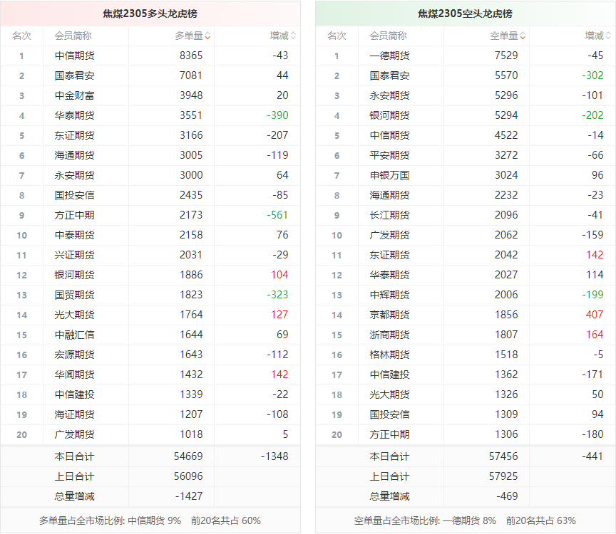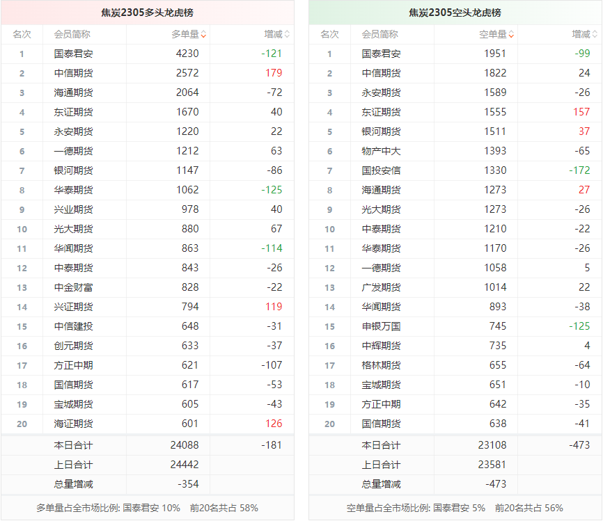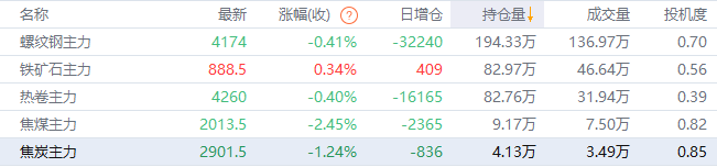 黑色持仓龙虎榜:焦煤跌2.45% 中信期货增持近8千手螺纹多单