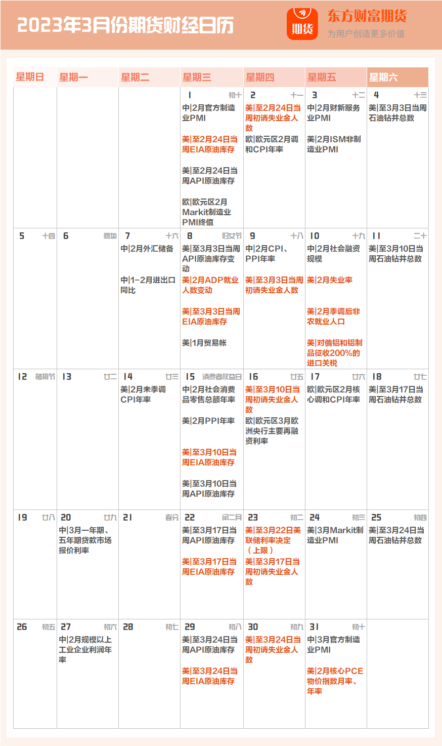 期货日历 | 2023年3月重要期货财经数据和事件一览 东方财富研究中心 03月01日 注:相关数据与事件可通过东方财富期货APP-资讯-期货日历进行查看。(文章来源:东方财富研究中心) (责任编辑:admin)