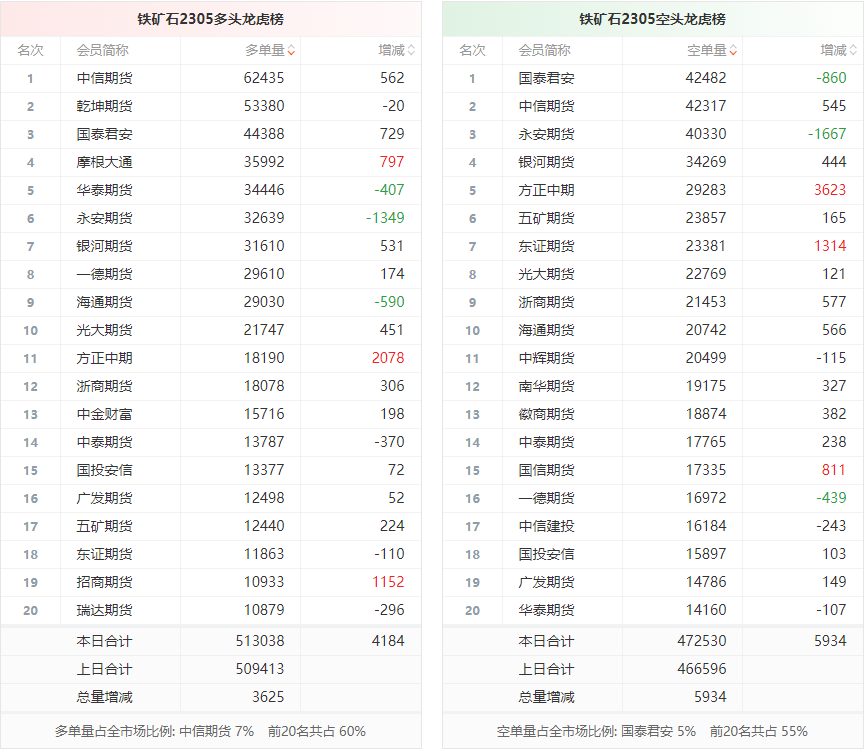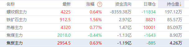 黑色持仓龙虎榜:铁矿涨1.56% 方正中期期货减持近1.4万手螺纹空单