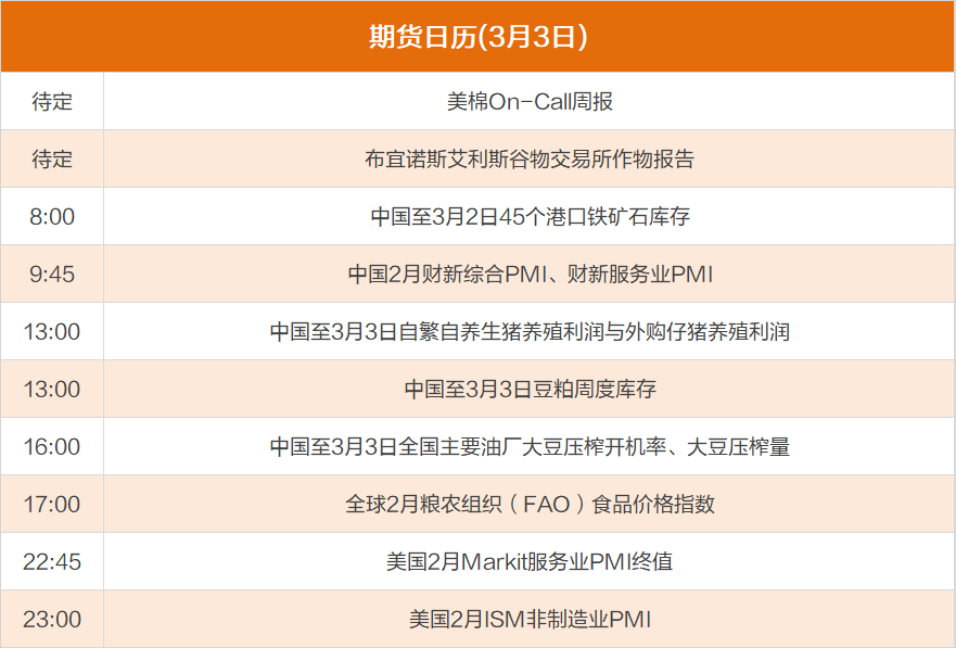 东方财富期货财经早餐 3月3日周五