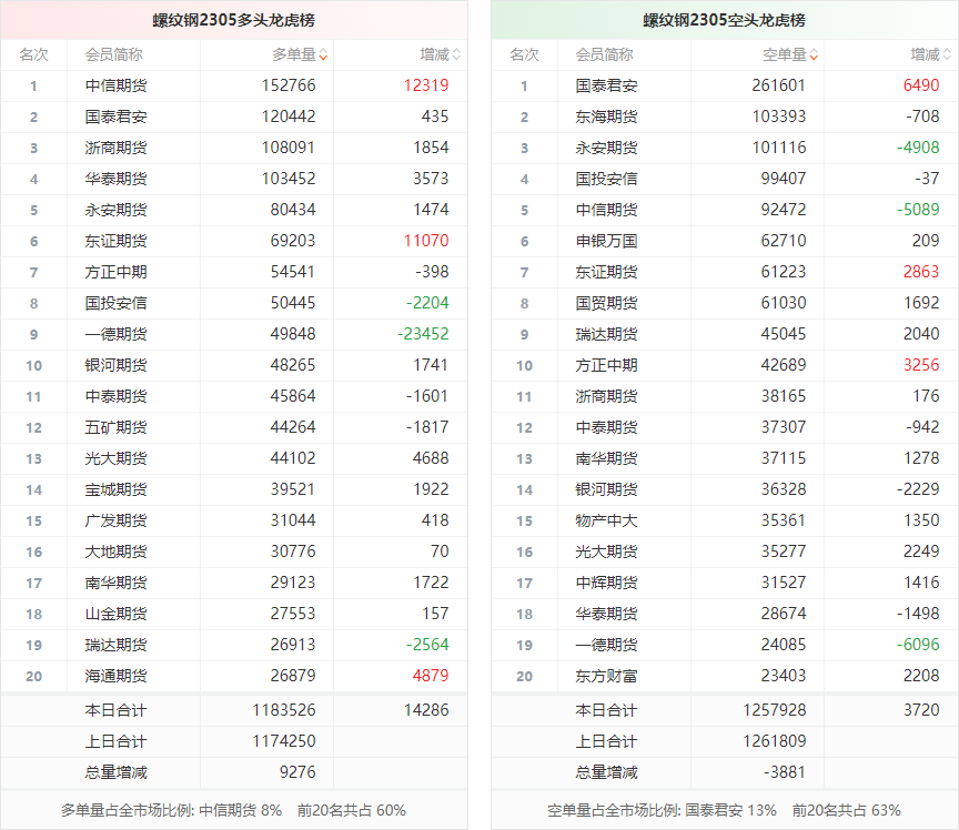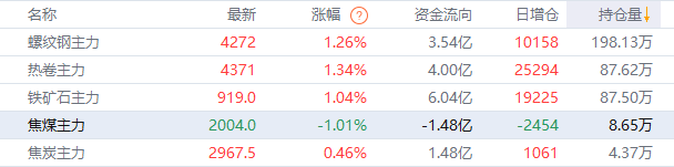 黑色持仓龙虎榜:螺纹钢涨1.26% 中信期货增持超1.2万手螺纹多单