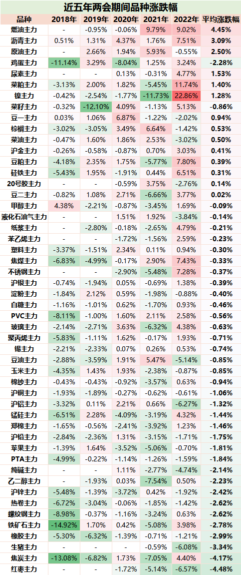 复盘近五年两会期间商品行情——就平均涨跌幅而言下跌多于上涨!