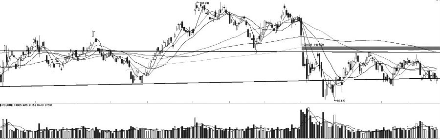 十债加权本周反复触及振荡区间下沿,中期依然处于振荡区间。均线方面,MA5再度拐头向下,且MA10与MA20持续向下,MA60维持向上,中短期方向存在较大分歧。指标方面,MACD绿柱收窄,DIF与DEA维持在0轴之下,表明十债加权较为弱势。整体看,十债加权当前继续处于上有压力下有支撑的区间振荡格局,后市重点关注区间下沿的支撑情况。(招商期货 于虎山) (责任编辑:admin) |